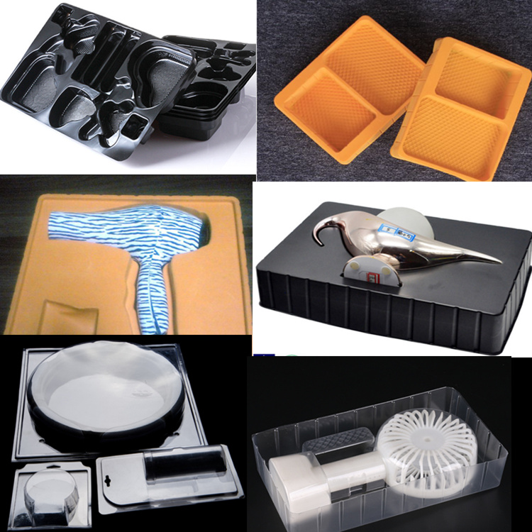 例如你去超/市買回來的雞蛋,就在雞蛋下面就有吸塑托盤,在超/市買回來的不銹鋼餐具就有吸塑托盤,你生活中用到口服液下面不是也有個(gè)東西承這的嗎?那也是吸塑托盤。
